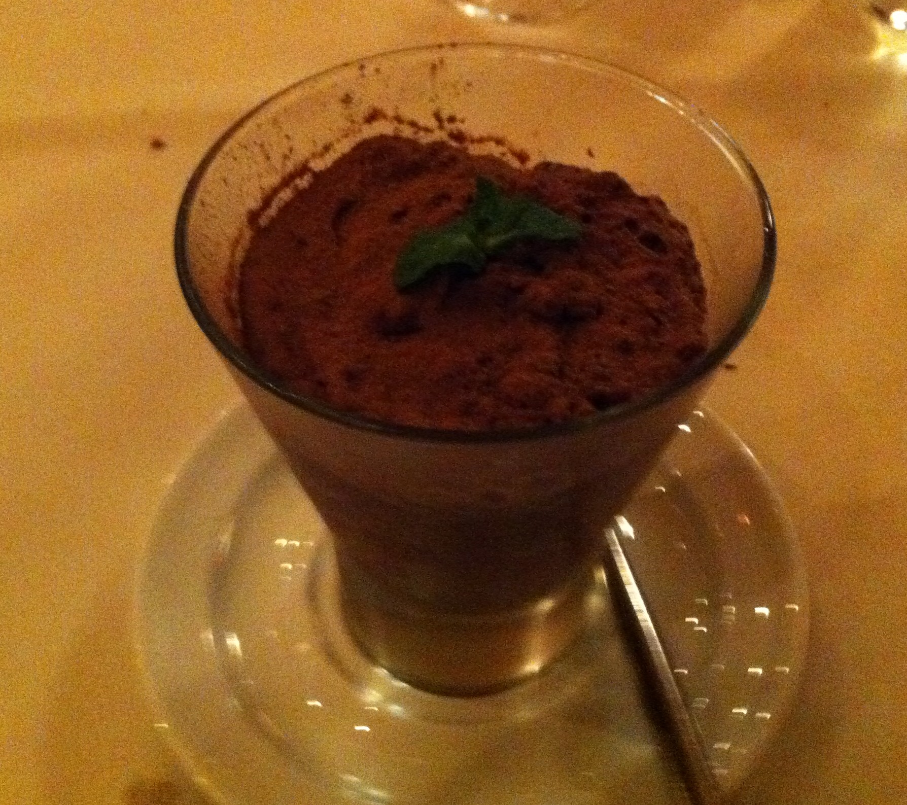 For dessert?  Being a chocohalic, I go for the Chocolate Mousse with Fresh Mint.  It’s everything I hoped for and more.  The mousse is creamy and delicious and the fresh mint adds texture and freshness.  My palate is happy, my appetite is sated and I couldn’t have asked for a better start to my gastronomic exploration of French cuisine!